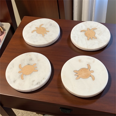 Set of 4 Sea Turtle Marble Coasters -White