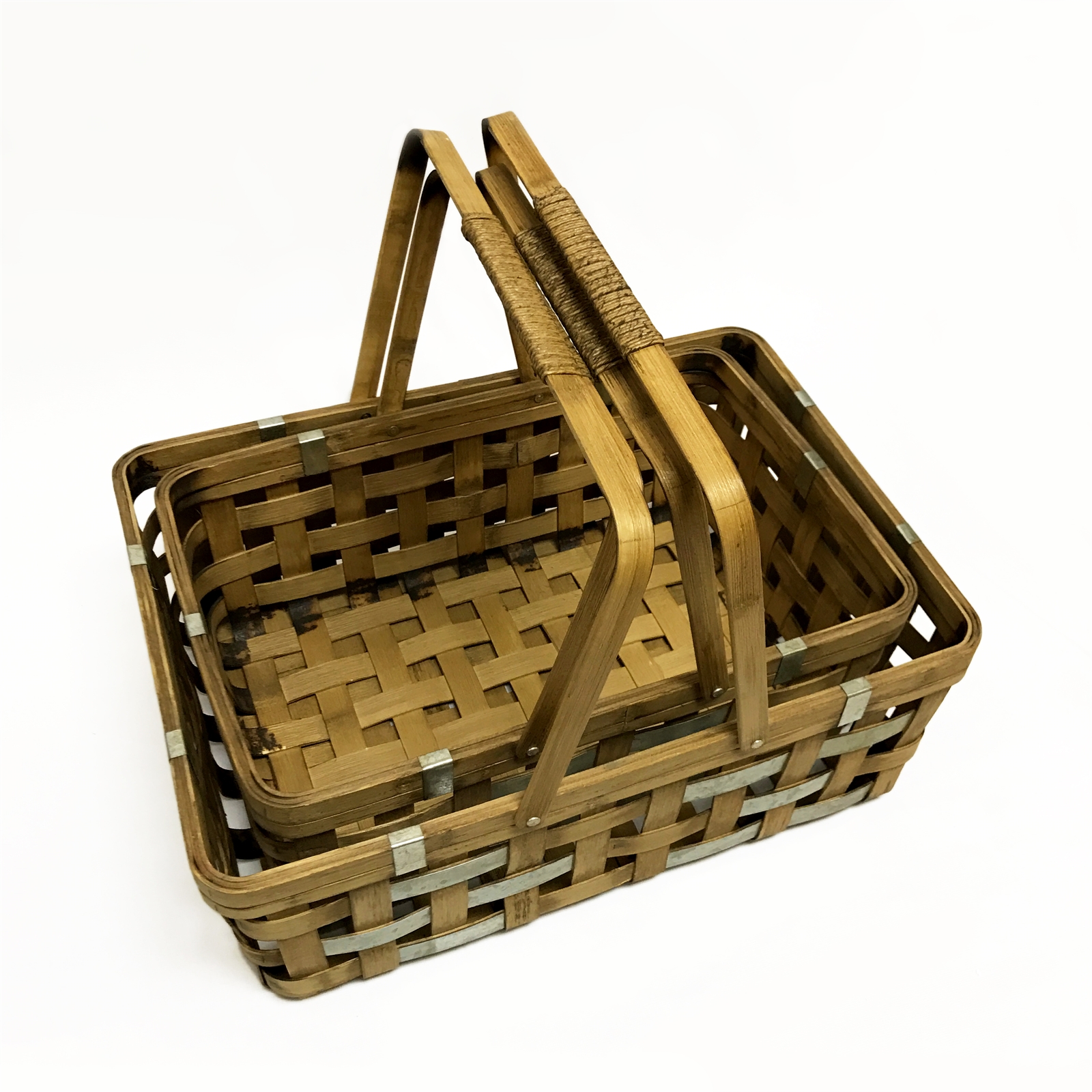 Set of 2 Rectangle Bamboo Drop Handle Basket