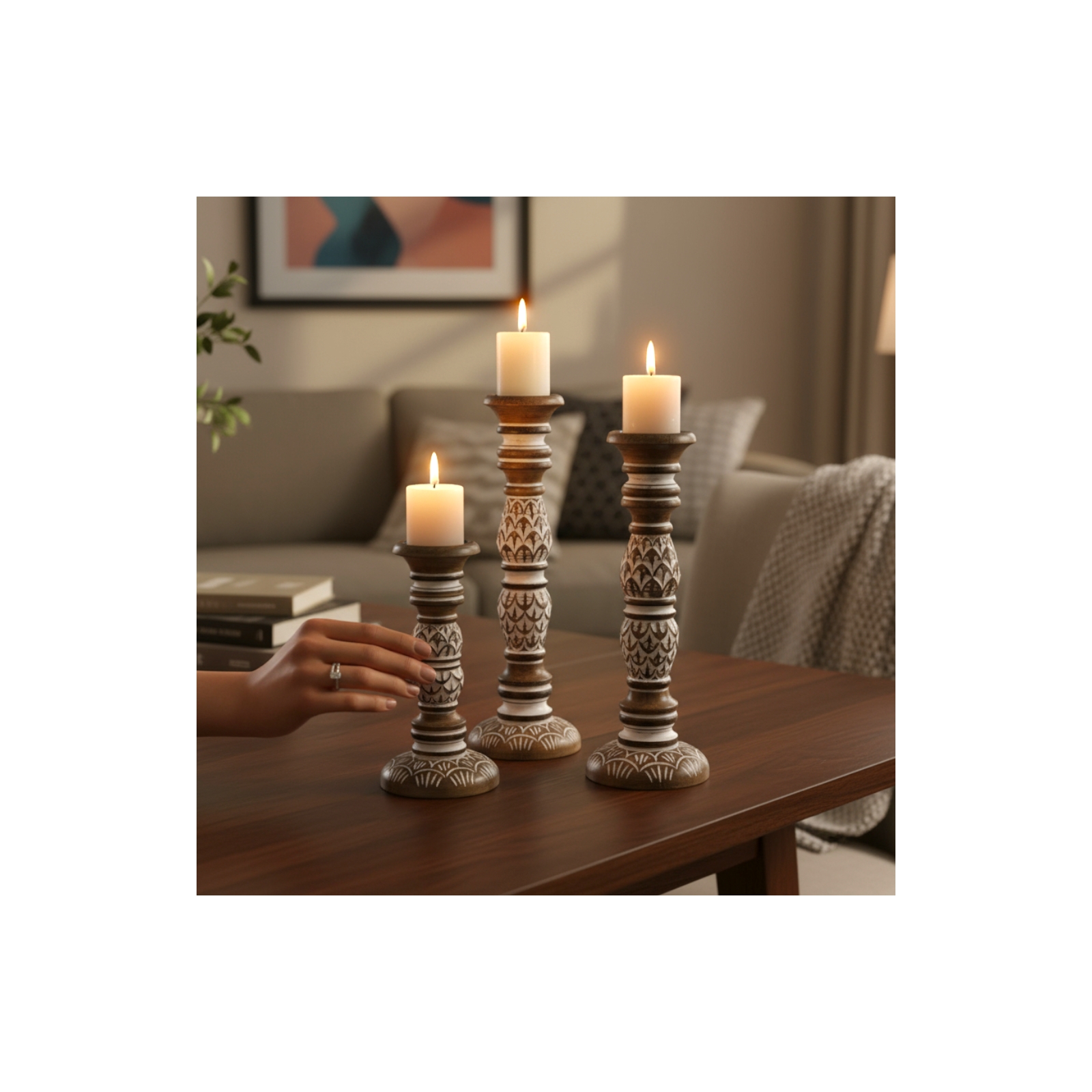 These hand-carved and hand-finished candleholders offer exceptional value, combining artistry and practicality. Whether gracing your dining table, mantel, or any other space in your home, they bring a warm, inviting ambiance thats perfect for any occasion.