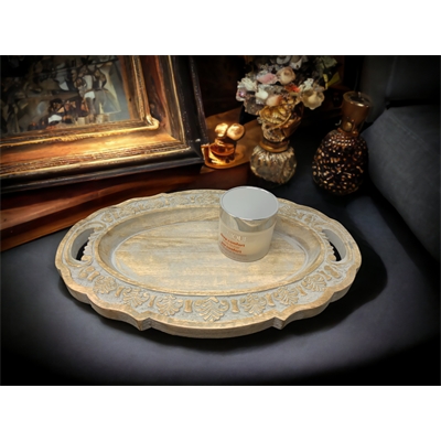 Tree of Life Half-Round Carved Box-White Wash