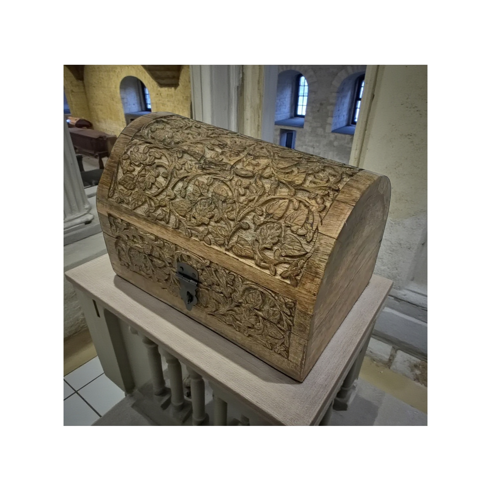 Experience the beauty and functionality of Indian craftsmanship with our Handmade Domed Table Chest, where tradition and innovation unite to create a timeless piece that will be treasured for generations.