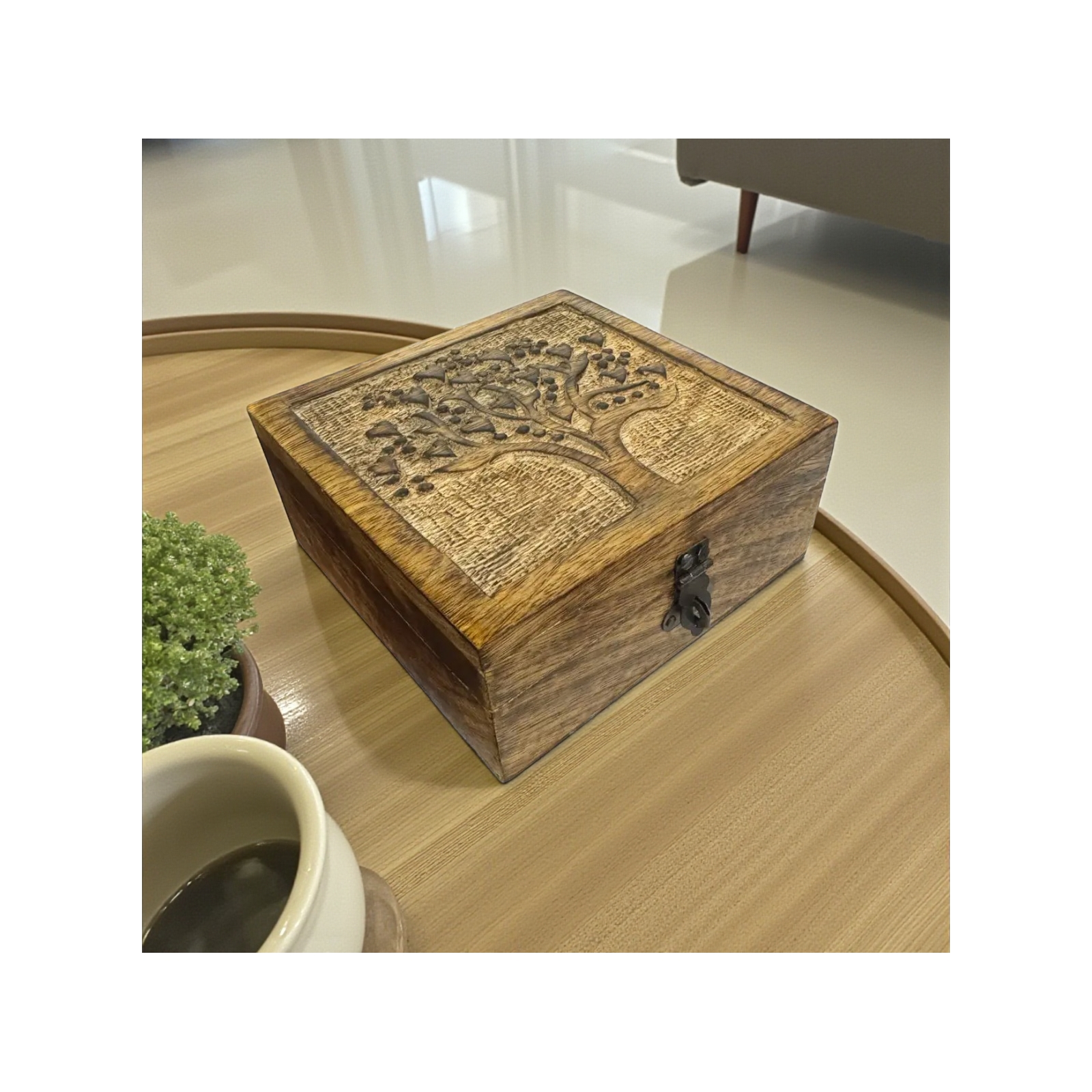Tree of Love Medium Carved Box-Coffee