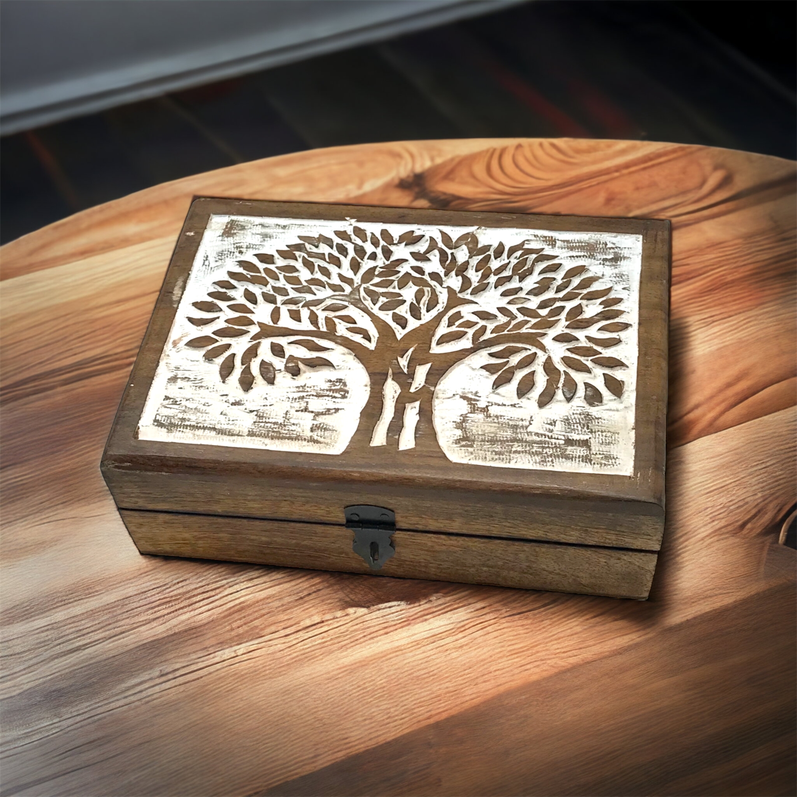 Shade Tree Rectangle Carved Box-White Wash