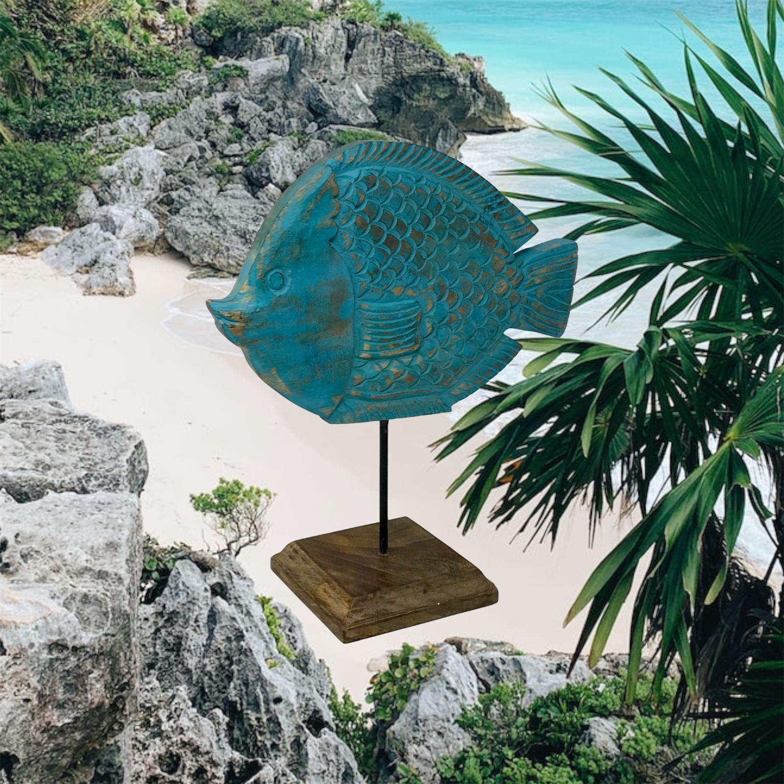 Polly Puffer Fish on Stand-Turquiose Wash