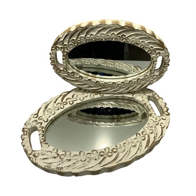 Set of 2 Vanity Mirror Trays - White Wash