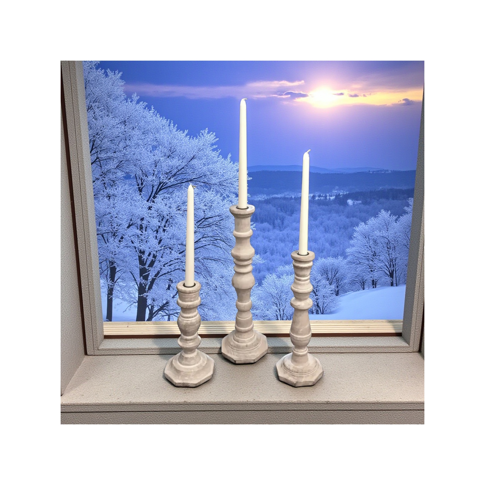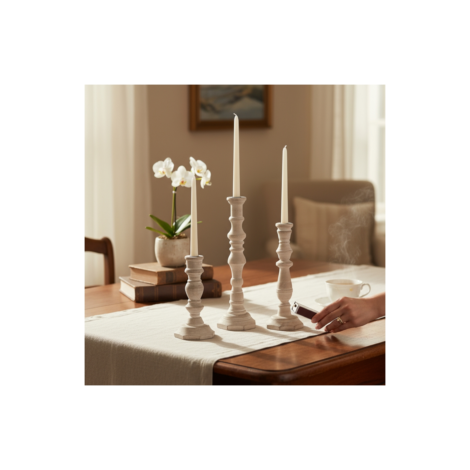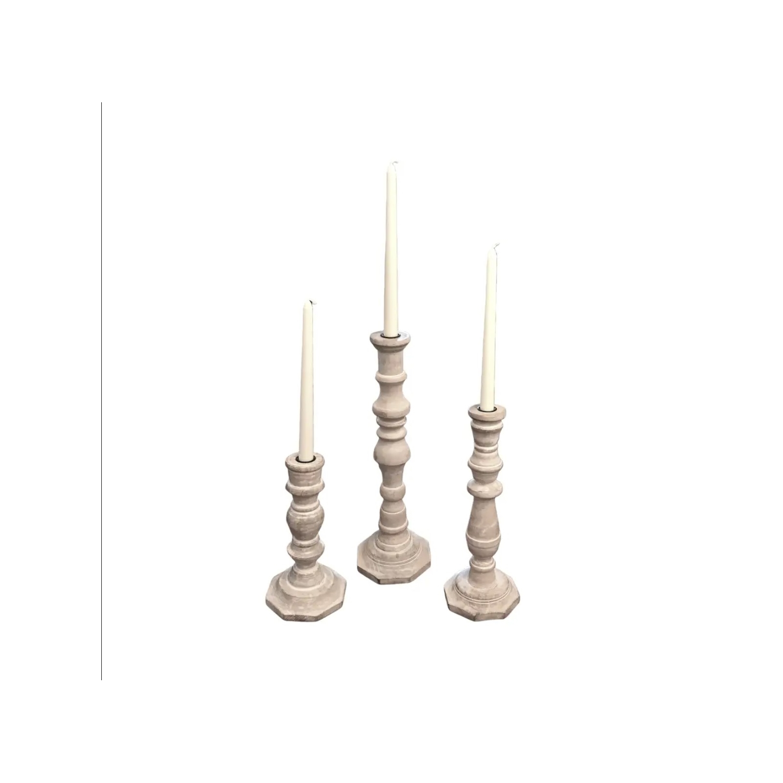 Set of 3 Donna Taper Candleholders- Bleached Wood