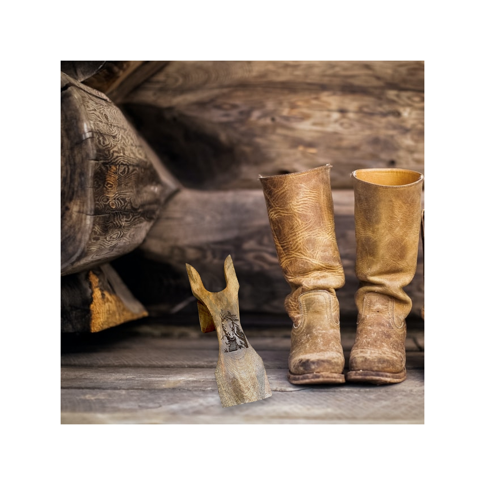Branding Iron Laser Etched Horse Design Boot Jack a timeless accessory inspired by the rugged spirit of the Old West. Crafted with utmost care and attention to detail this boot jack combines the charm of a remastered antique design with the precision of modern laser etching technology.