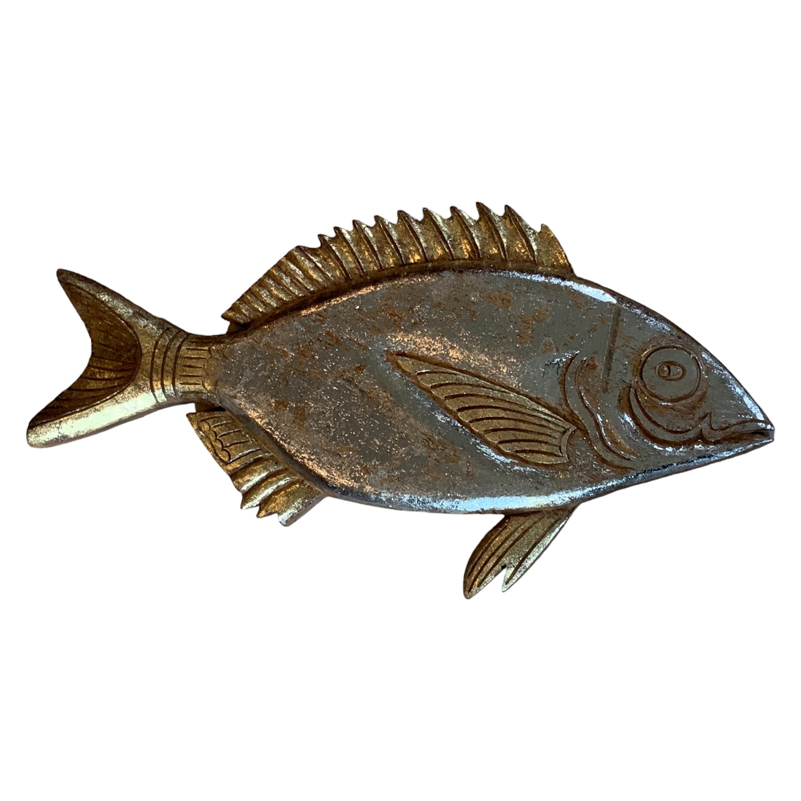Measuring 24 inches wide, 2 inches thick, and standing at 11.25 inches high, our Sheepshead Raised Art Decor is a statement piece that captures attention with its lifelike dimensions. The distressed Silver Foil finish adds a touch of vintage elegance, creating a weathered look that imparts character and warmth to any room.