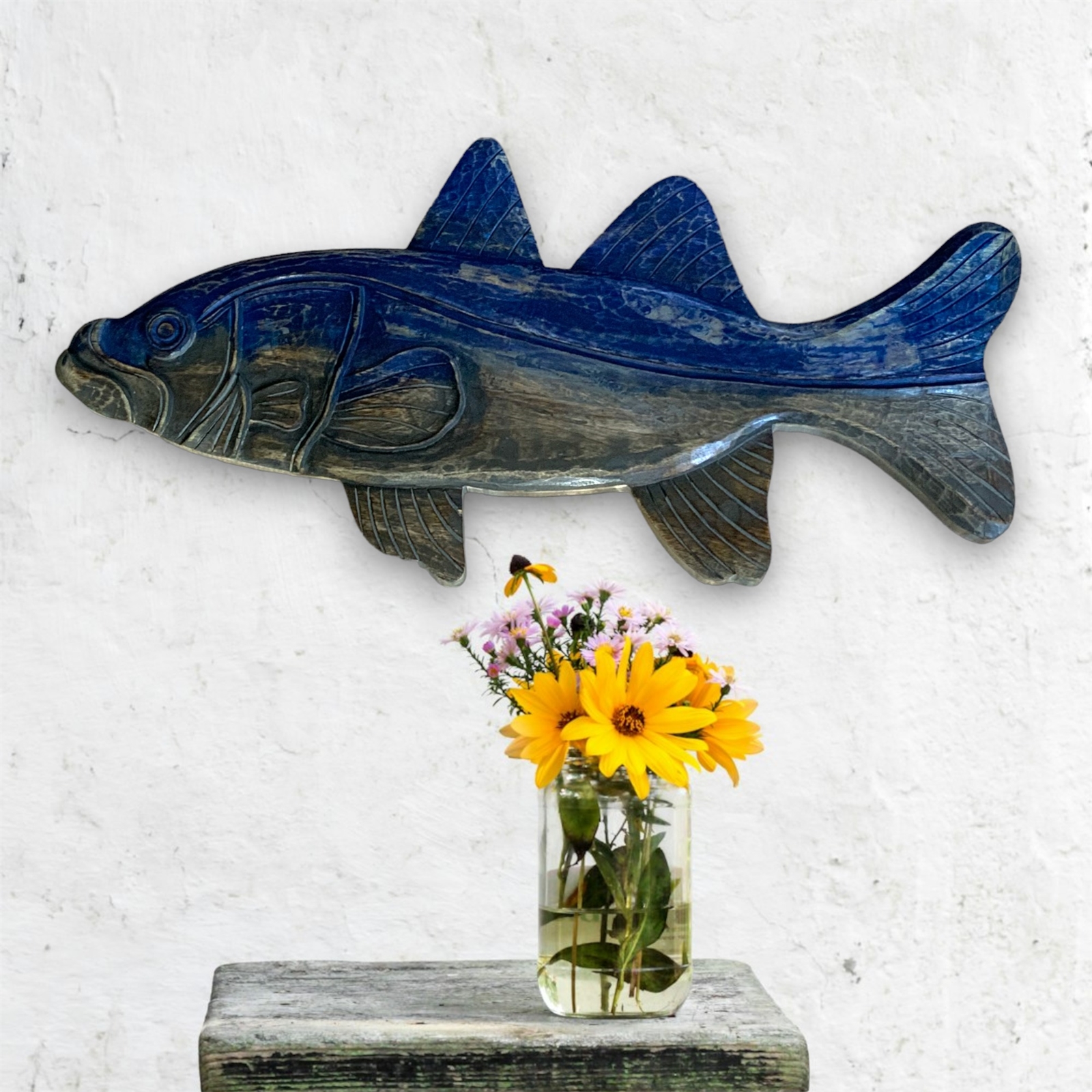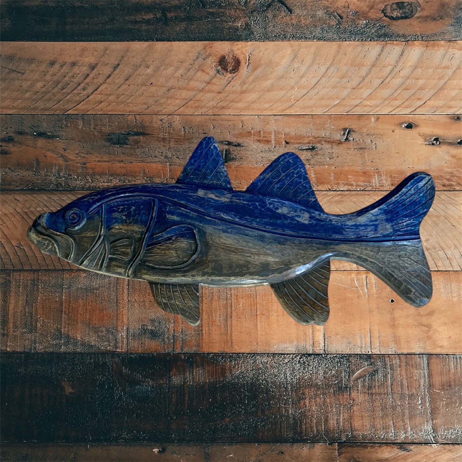 King Mackerel Wood Wall Art -Blue-Grey Wash