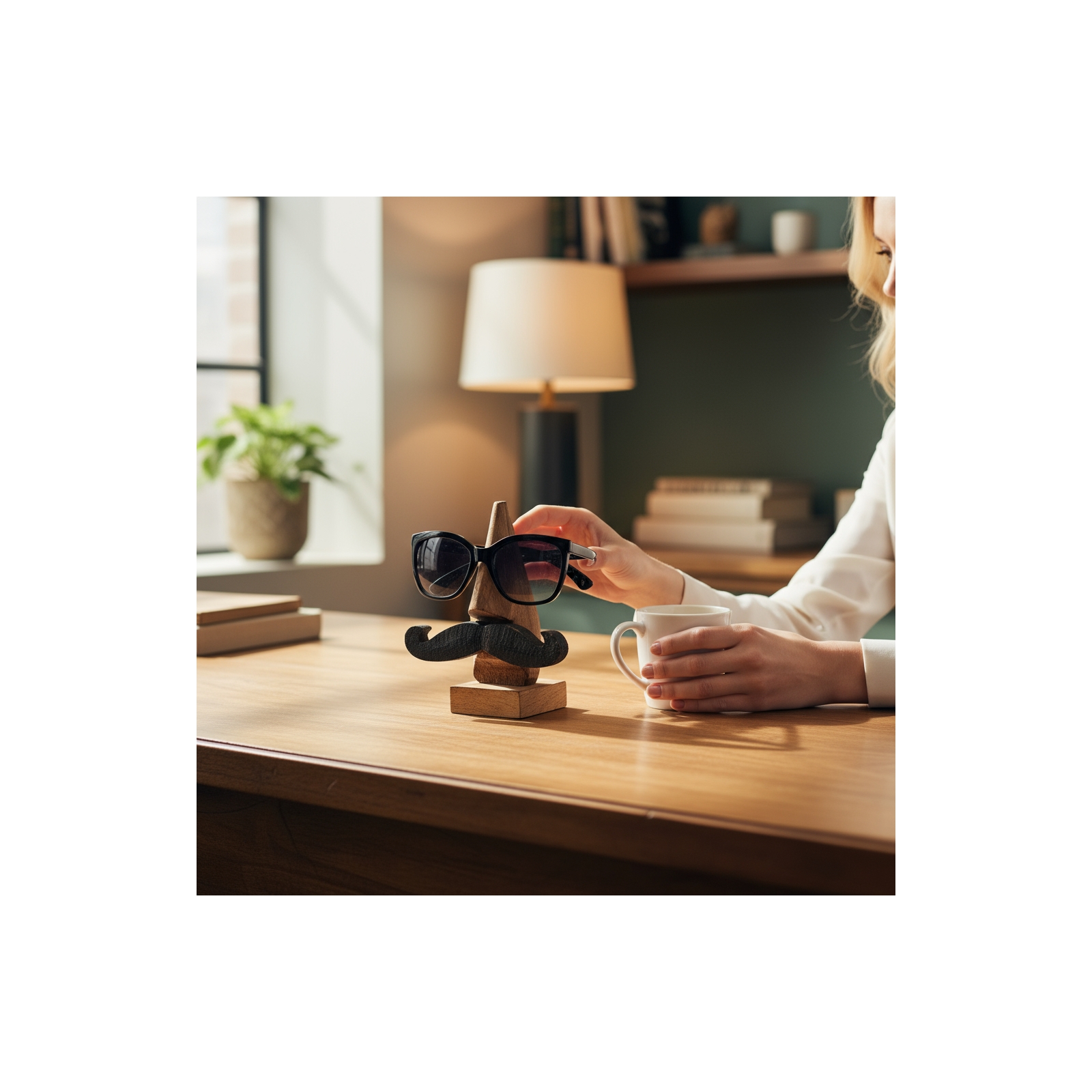 His Eye Glass Holder- Natural-Black Mustache