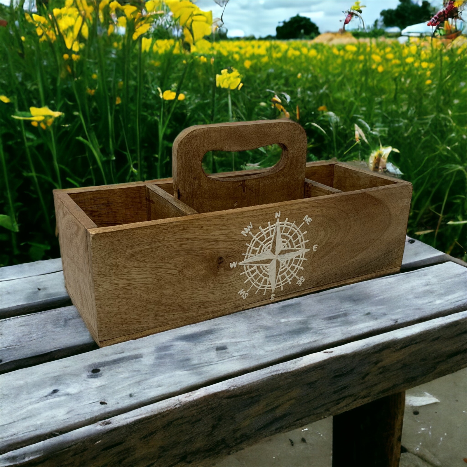 Enhance your organization in style with our Solid Mango Wood Caddy – a fusion of functionality and artistry that brings the charm of India and the allure of the sea into your everyday life. Whether displayed in your kitchen, studio, or garden, this versatile caddy is bound to make a statement while keeping your essentials neatly organized.