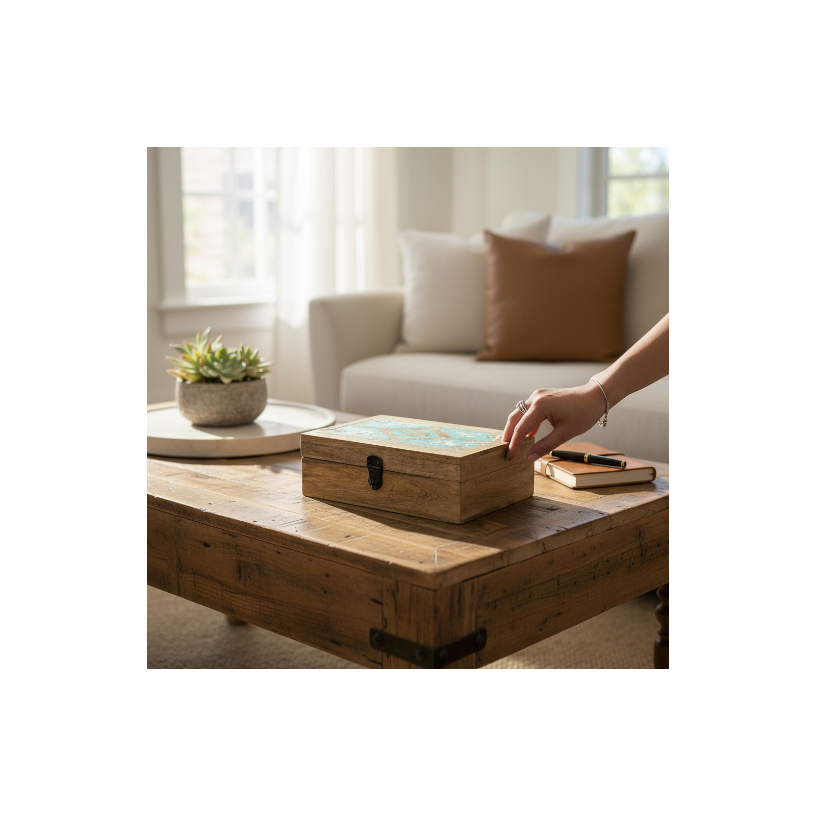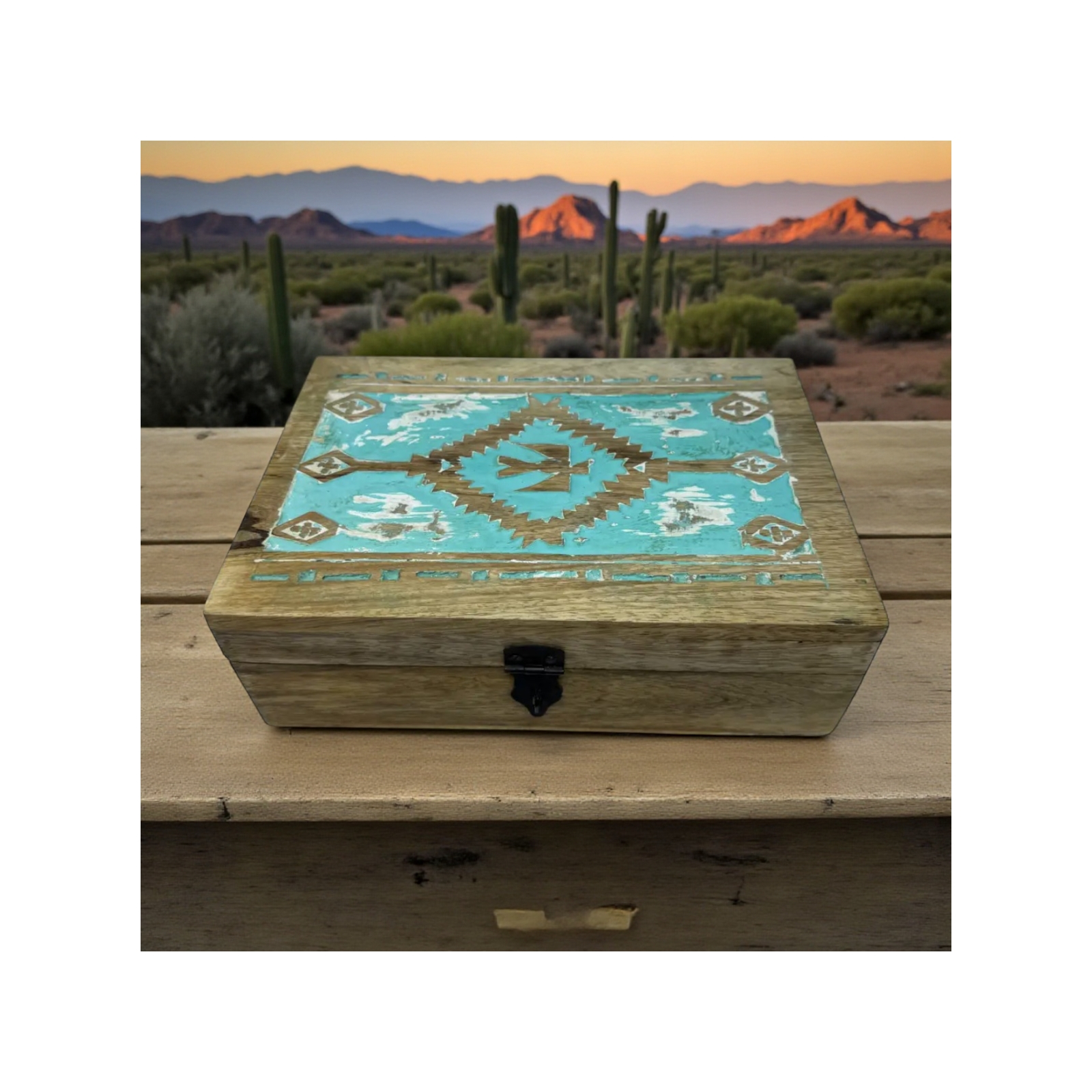 Thunderbird Life Rectangle Carved Box- White with Light Turquise - 4/4/16