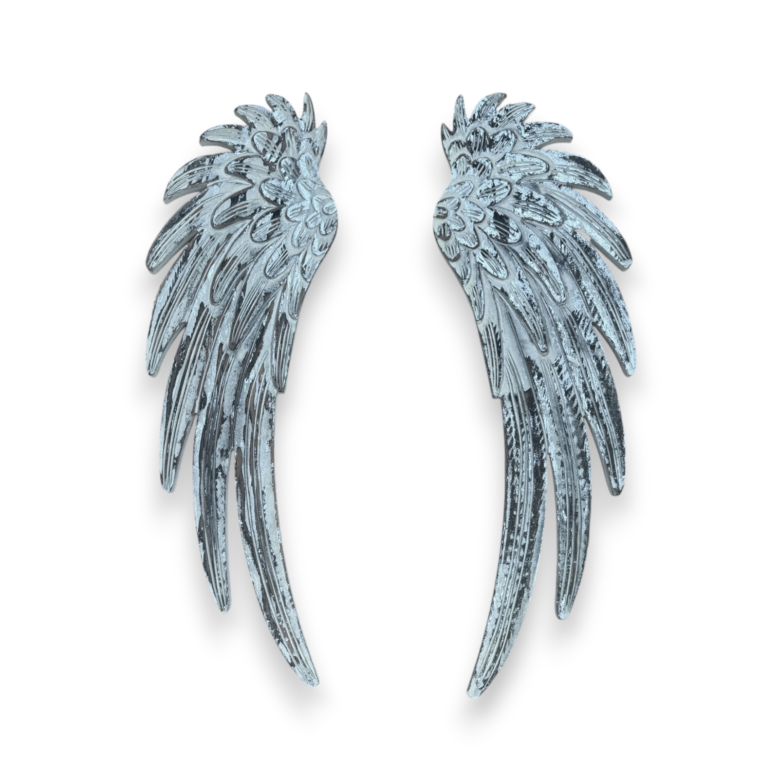 Measuring 11 wide x 35.75 high PER WING and with a thickness of 3/8, these versatile wings can be hung vertically for a classic look or arranged in a V-shape to symbolize victory and inspiration. Whether adorning a nursery, child’s bedroom, or a serene corner of your home decor, their uplifting design will radiate peace and grace.