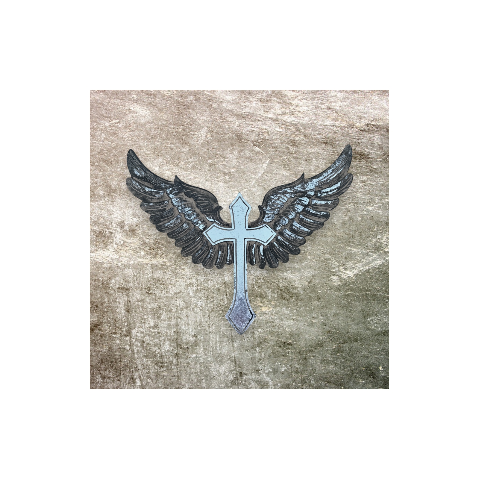 Jophiel Angel Wings Wall Cross White Silver Foil