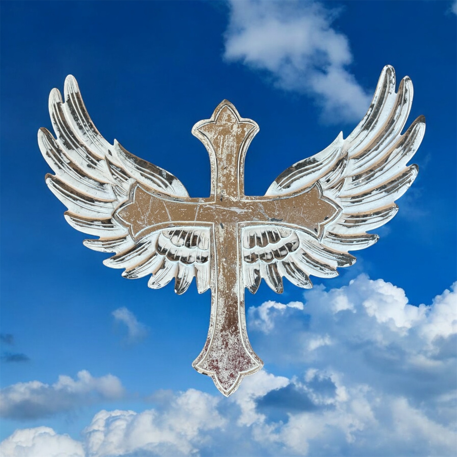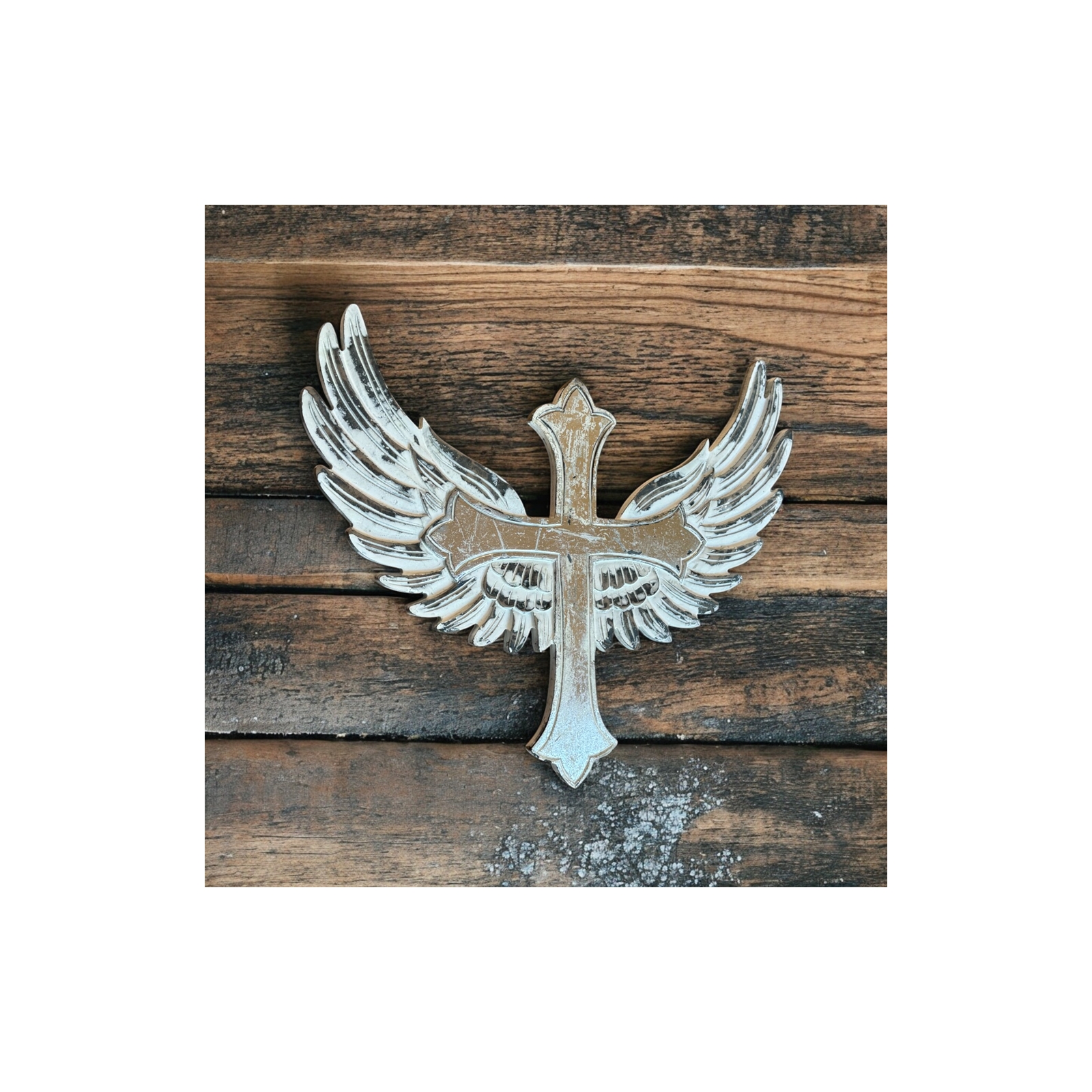 Michael Angel Wings Wall Cross Antq White/Silver F