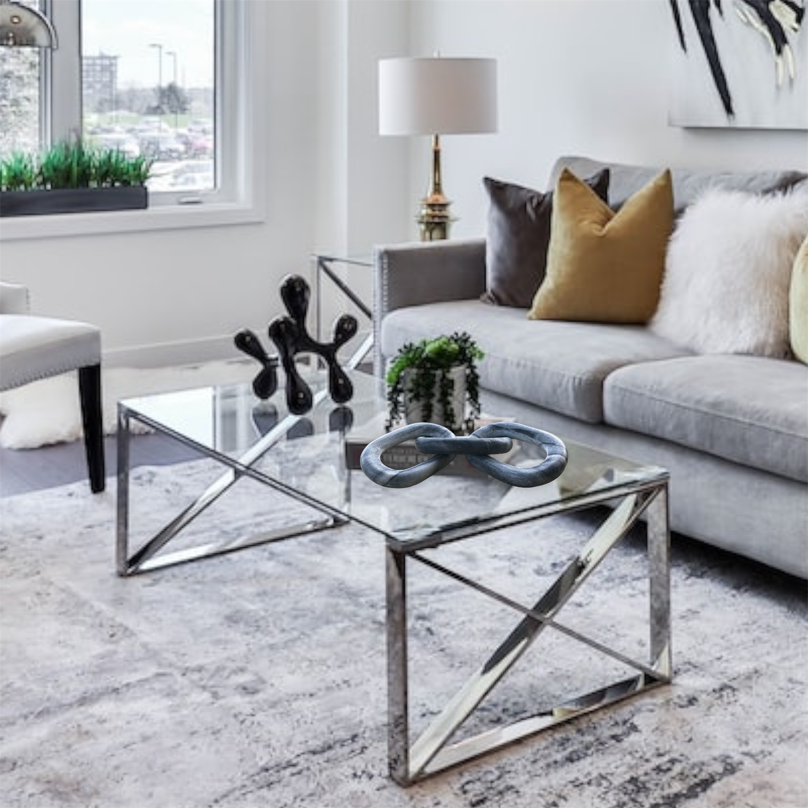 Grey-Black Marble Triple Oval Link Chain Décor is an exquisite piece of home décor that has taken the market by storm. This elegant piece of artwork is quarried and hand-crafted in India using high-quality grey-black marble. The artisans pay great attention to detail in order to create a flawless product that exudes luxury and sophistication.