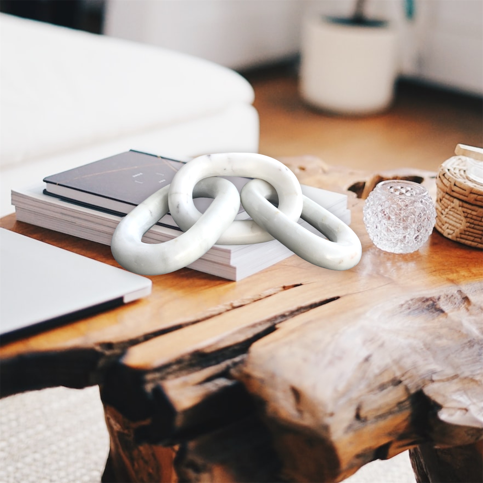 White Marble Triple Oval Link Chain Décor is an exquisite piece of home décor that has taken the market by storm. This elegant piece of artwork is quarried and hand-crafted in India using high-quality White marble. The artisans pay great attention to detail in order to create a flawless product that exudes luxury and sophistication.