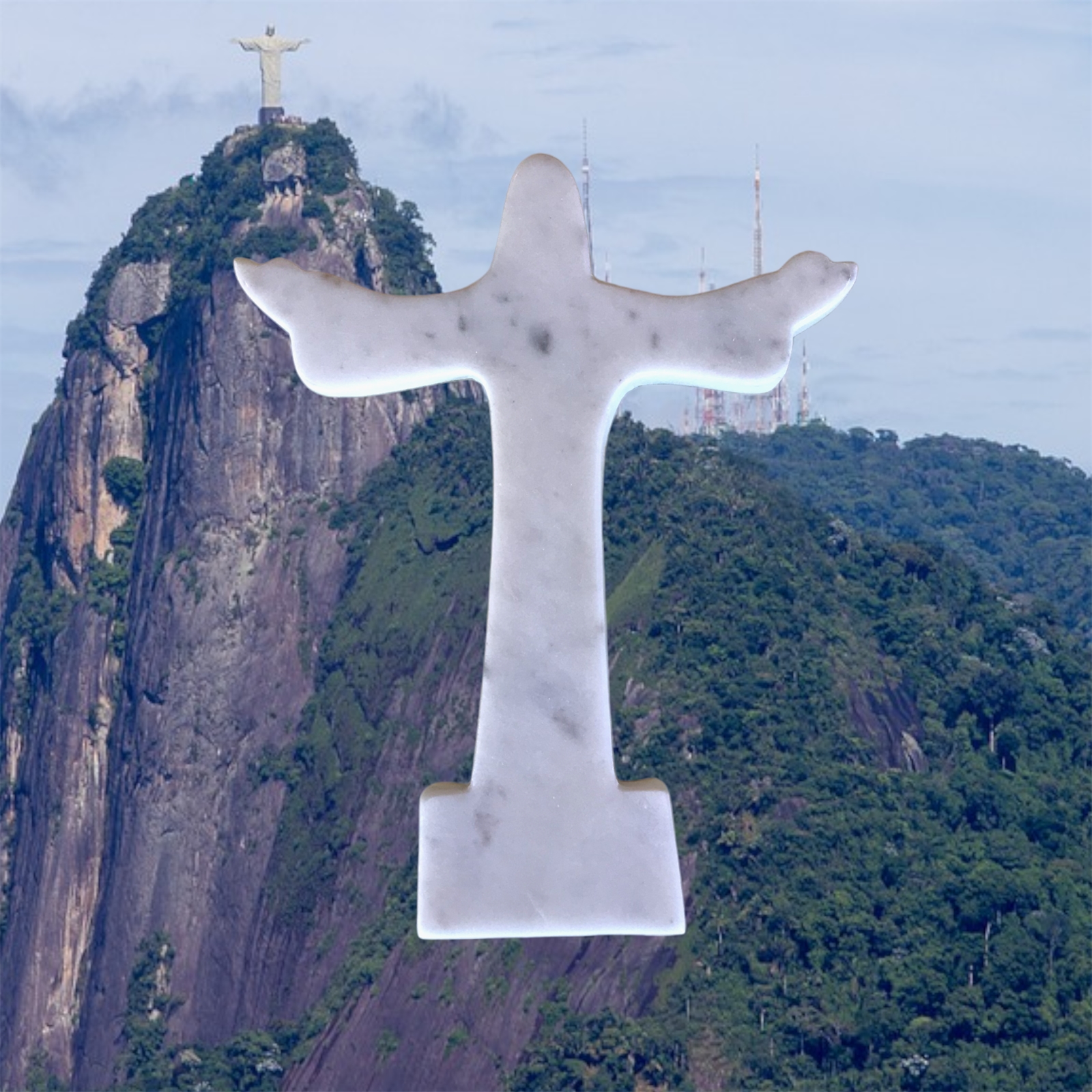 Christ the Redeemer is a beautiful white marble cross/figure inspired by the iconic statue in Rio de Janeiro Brazil. The design features clean simple lines with rounded edges giving it a timeless and elegant look. Measuring 8.25 wide 0.5 thick and 10 high this cross can be hung on a wall or placed flat on a bible page with ease thanks to the hole drilled into the back that wont tear the pages. Each cross is packaged in a custom Thermocol carton to protect it during shipping. Christ the Redeemer serves as a powerful symbol of faith and inspiration and this stunning rendition is a fitting tribute to the iconic statue that has captured the hearts and minds of millions around the world.