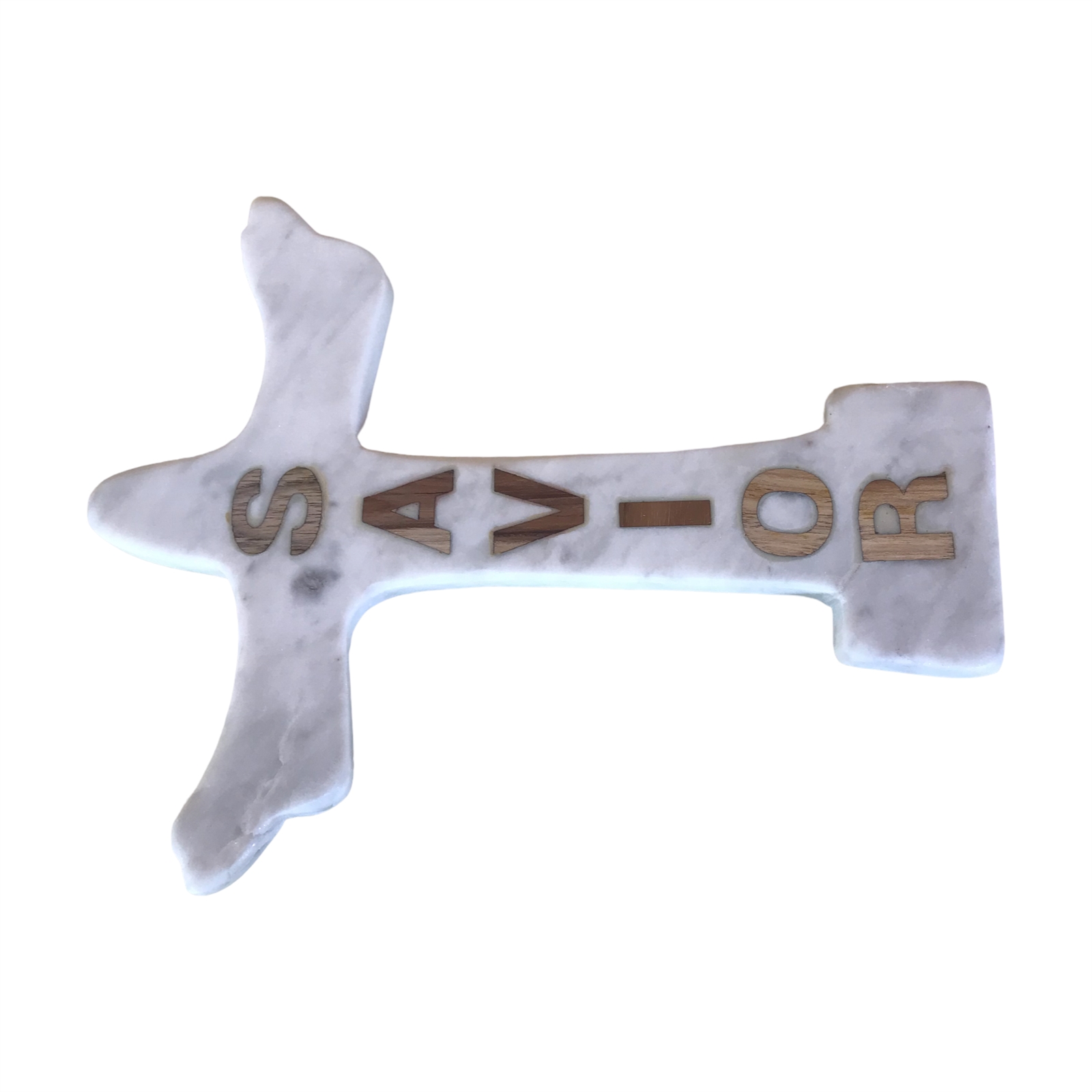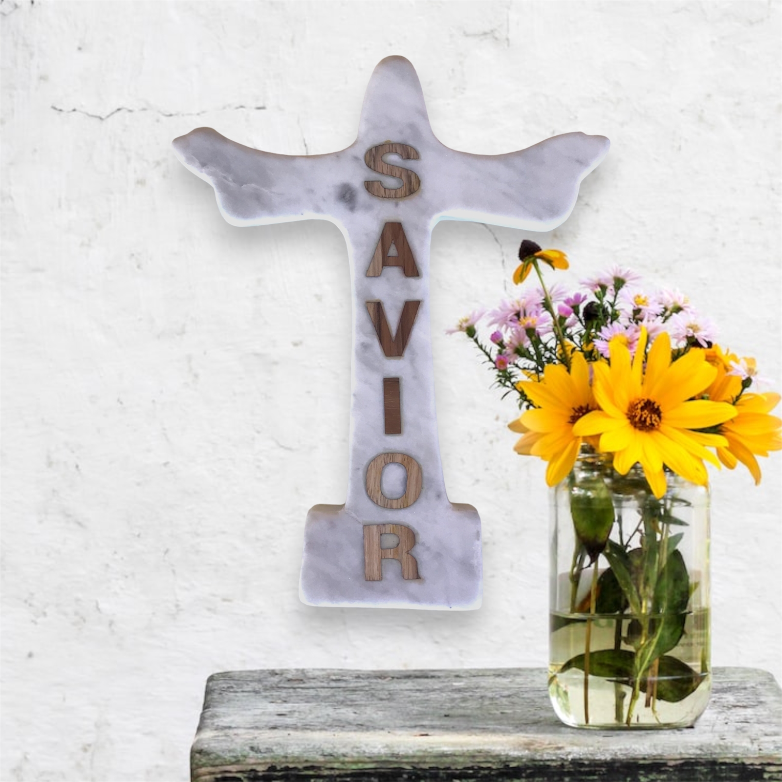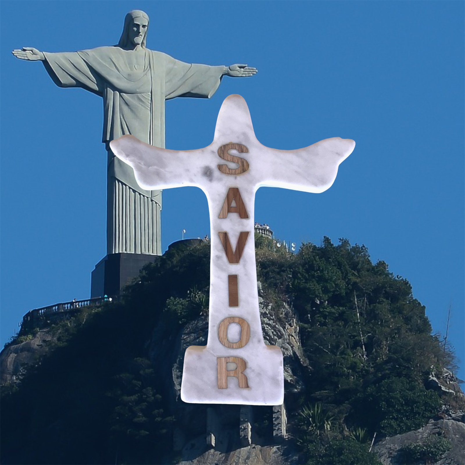 Christ Redeemer Marble Cross with SAVIOR Inlay-Whi