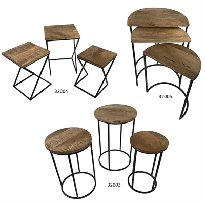 Set of 3 UPCYCLED Half Round Tables - 2/2/8