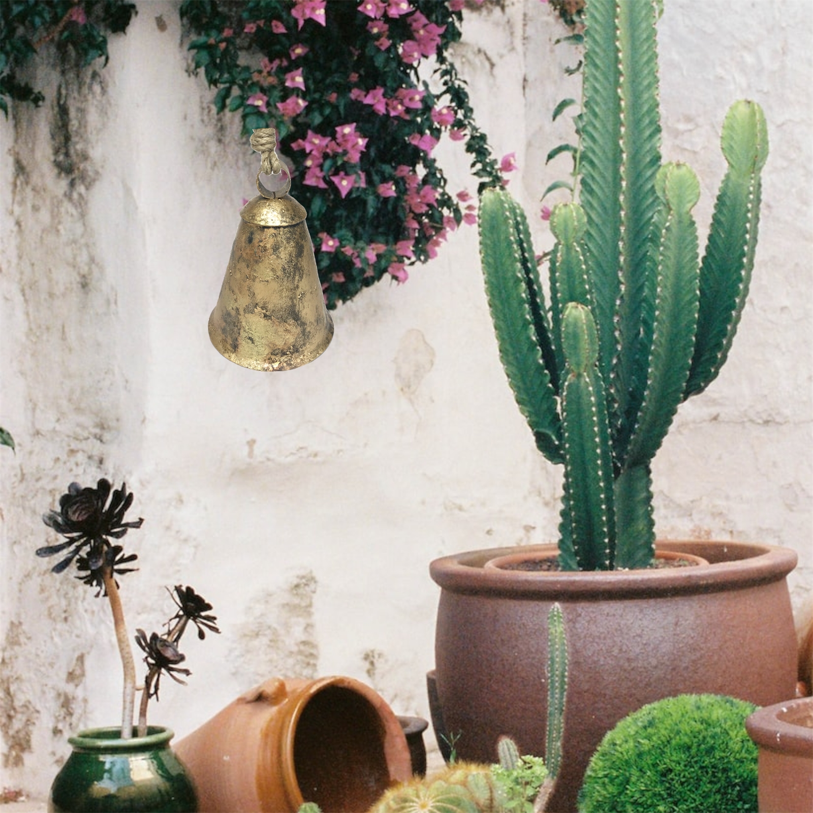 A thick jute rope hanger allows for easy installation and adds a rustic charm to the overall look. Hang it in your garden to create a tranquil atmosphere or bring it indoors to enhance the cozy ambiance of a farmhouse kitchen or use it as the centerpiece of a festive wreath. By utilizing upcycled metal this bell not only adds beauty to your space but also promotes sustainability and eco-consciousness.