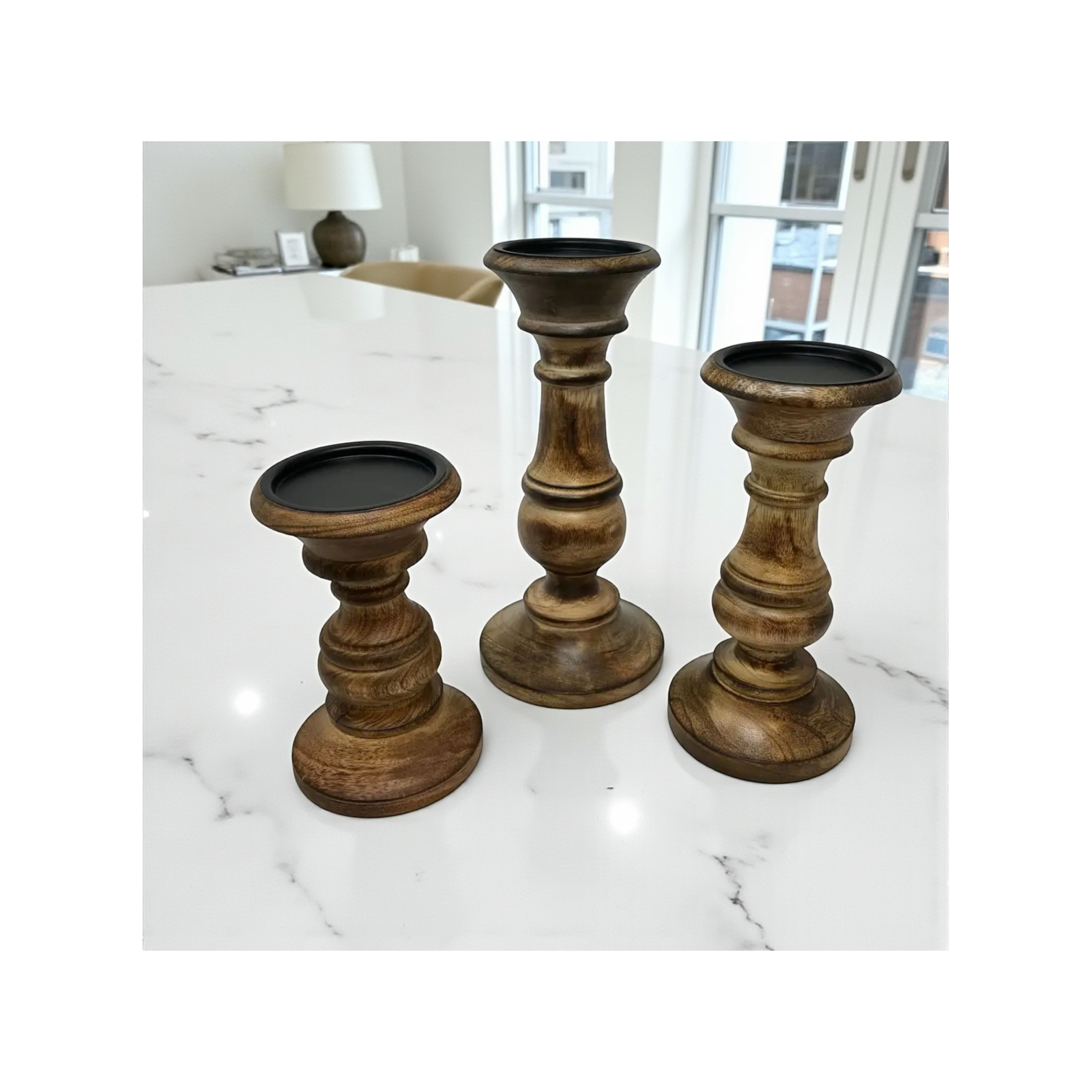 Set of 3 Dodge House Pillar Holder-Medium Oak Stai