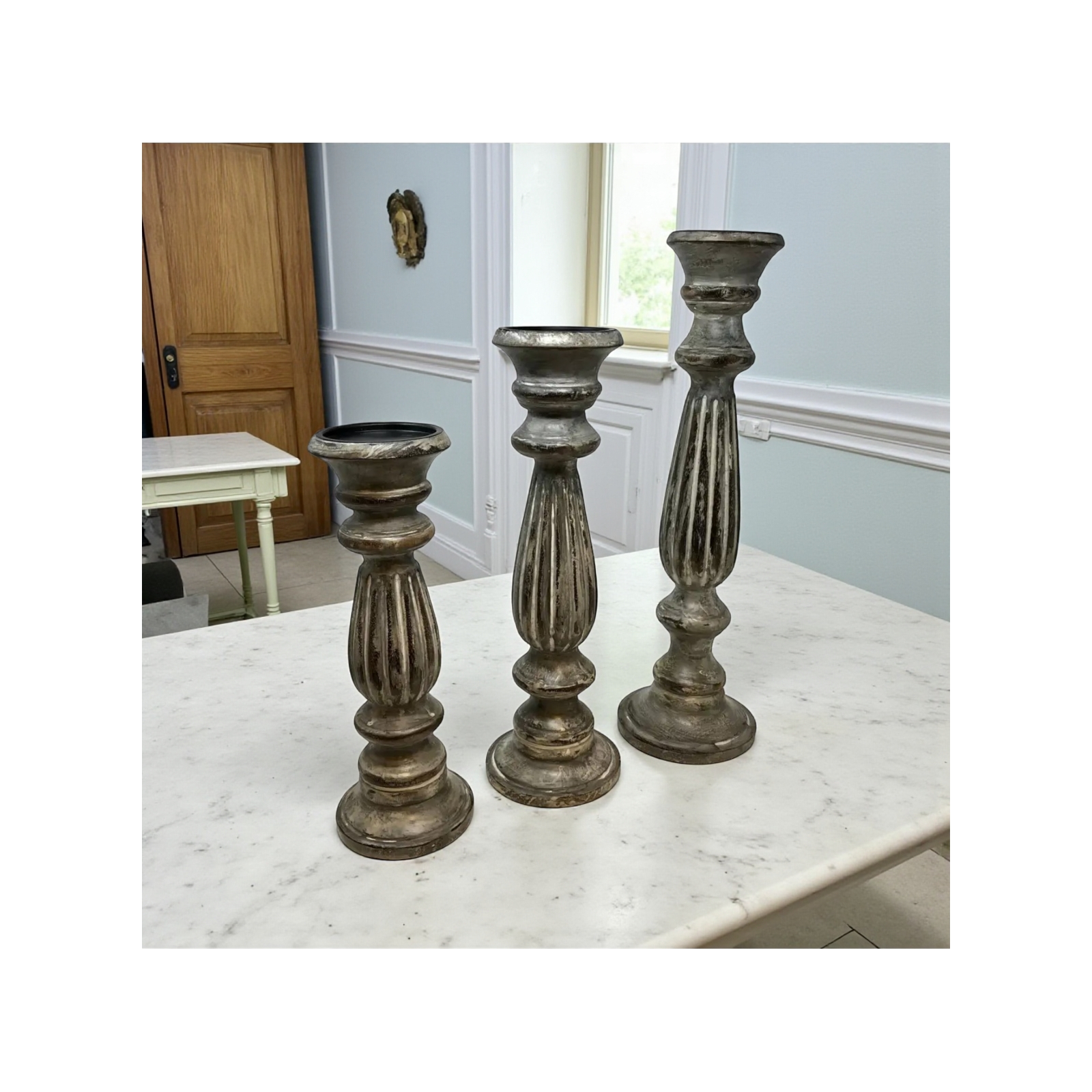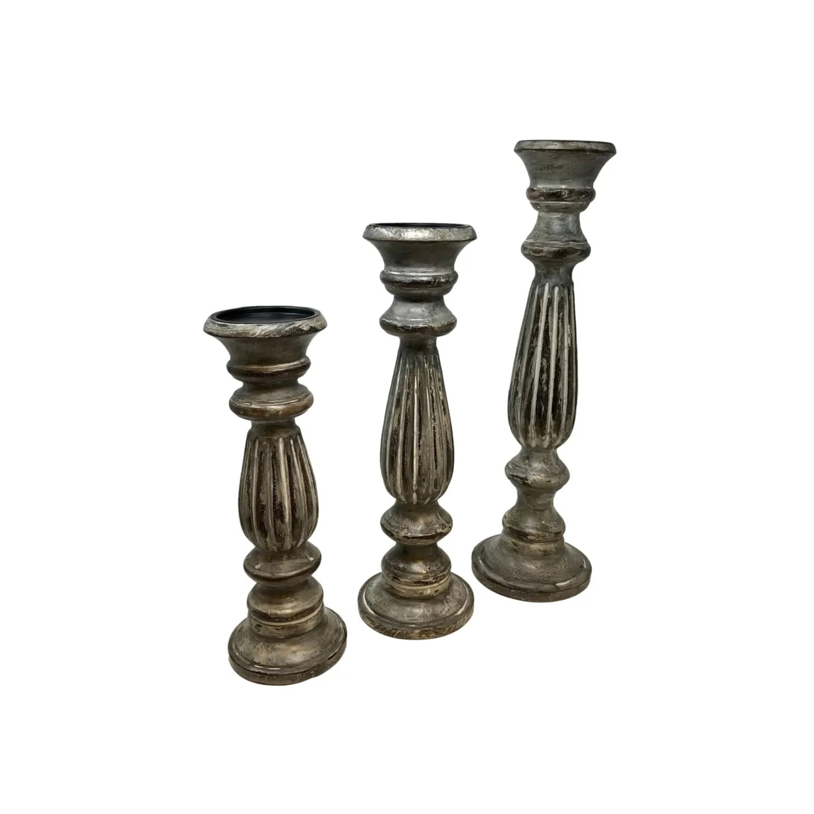 Set of 3 Colonial Pillar Holder-Whitewashed over B
