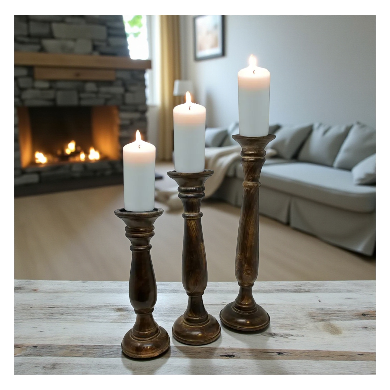 Set of 3 Princeton Pillar Holder-Medium Oak Staine