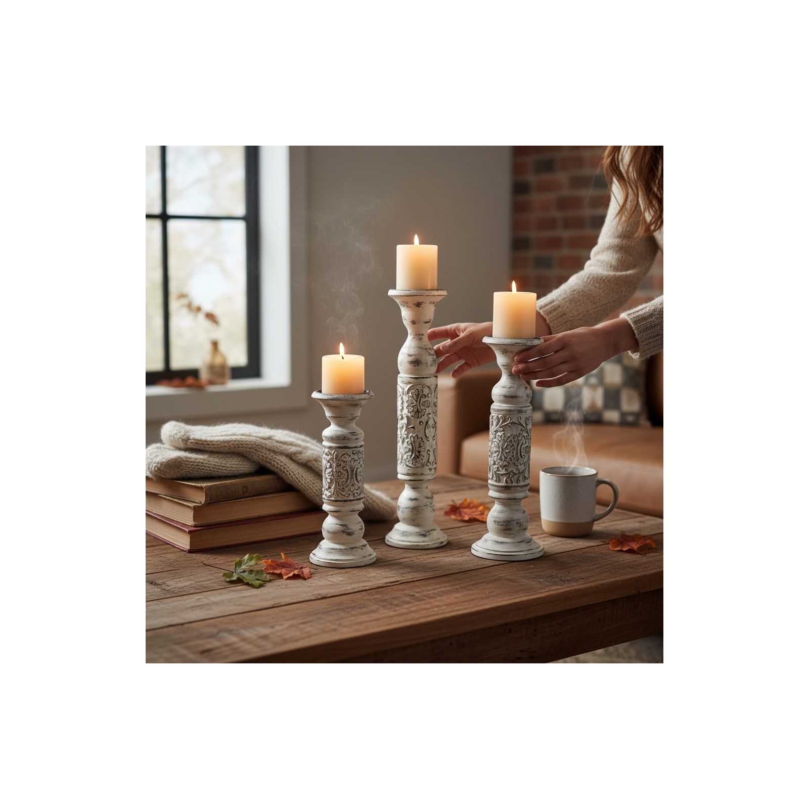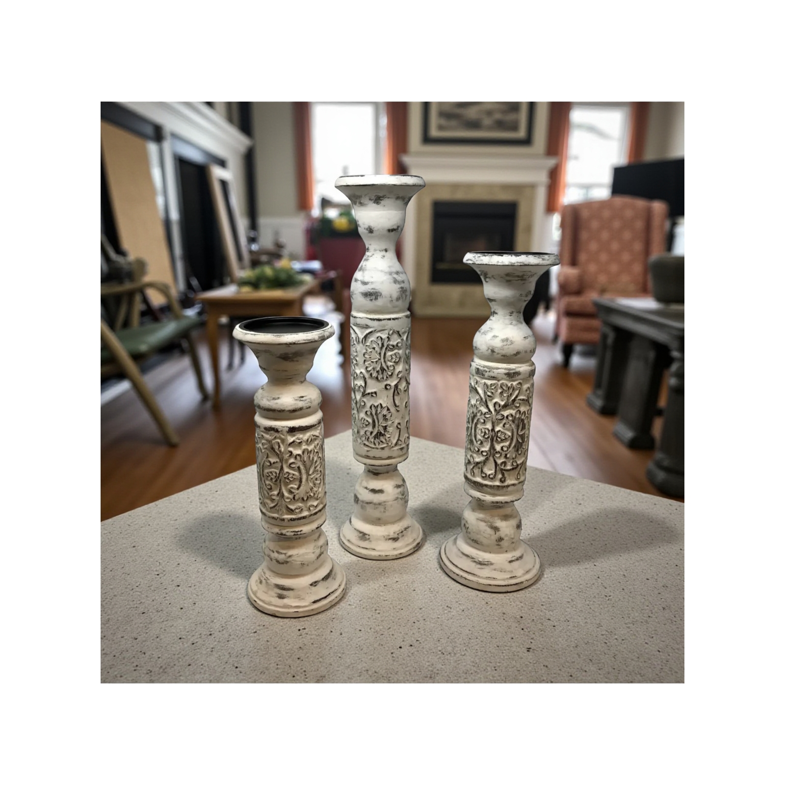 Set of 3 Sissinghurst Pillar Holder-Shabby Chic Wh