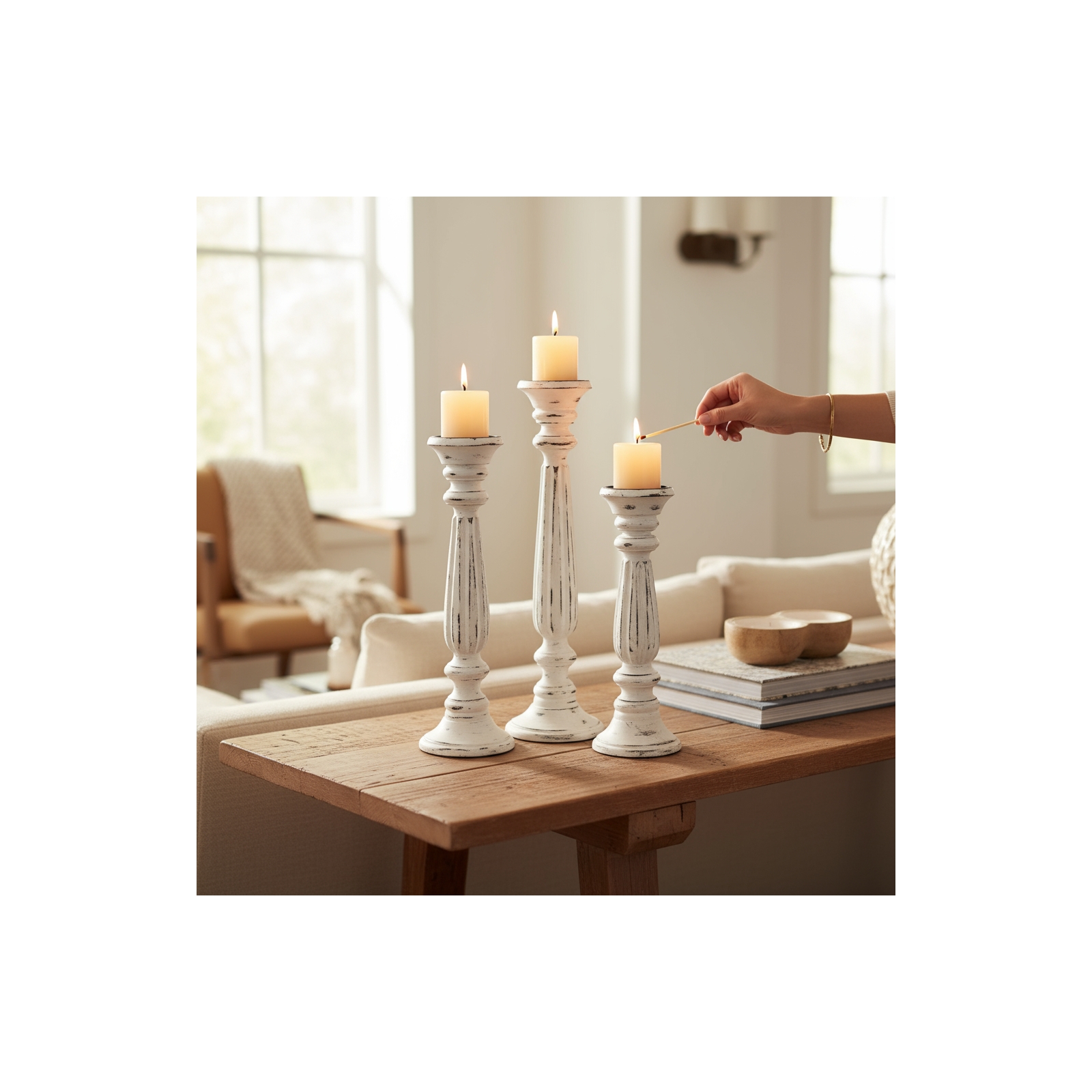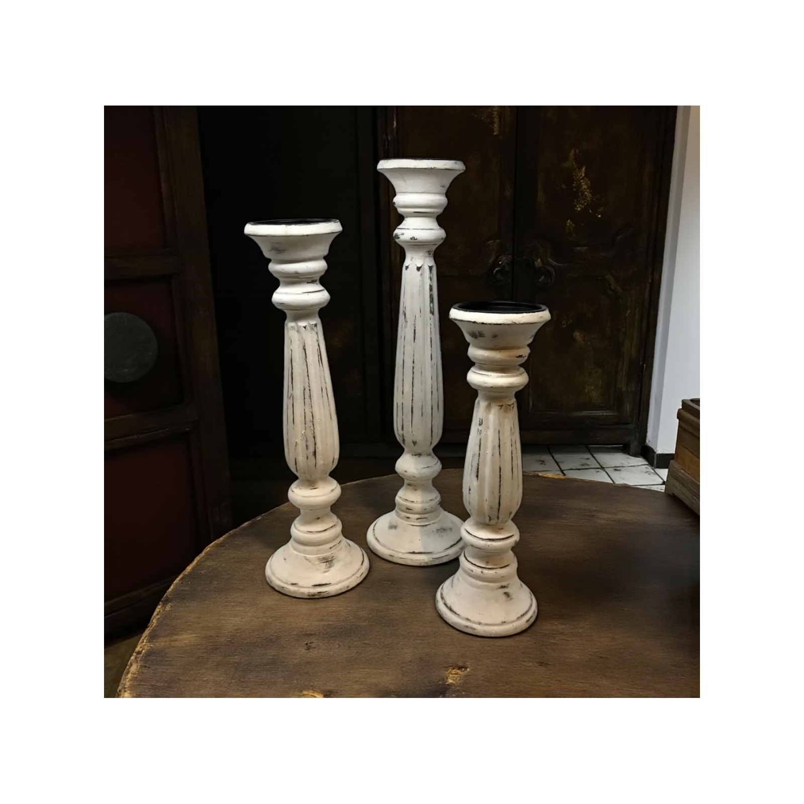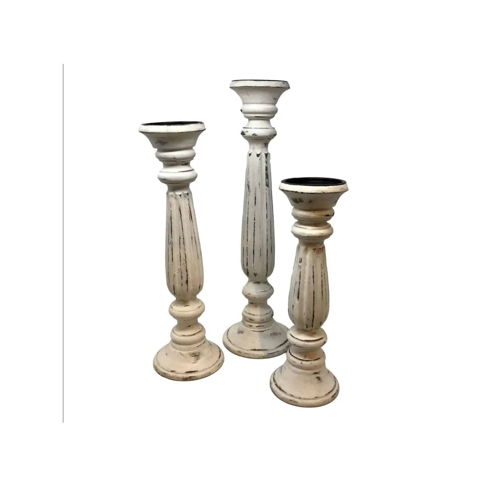 Set of 3 Framingham Pillar Holder-Shabby Chic Whit