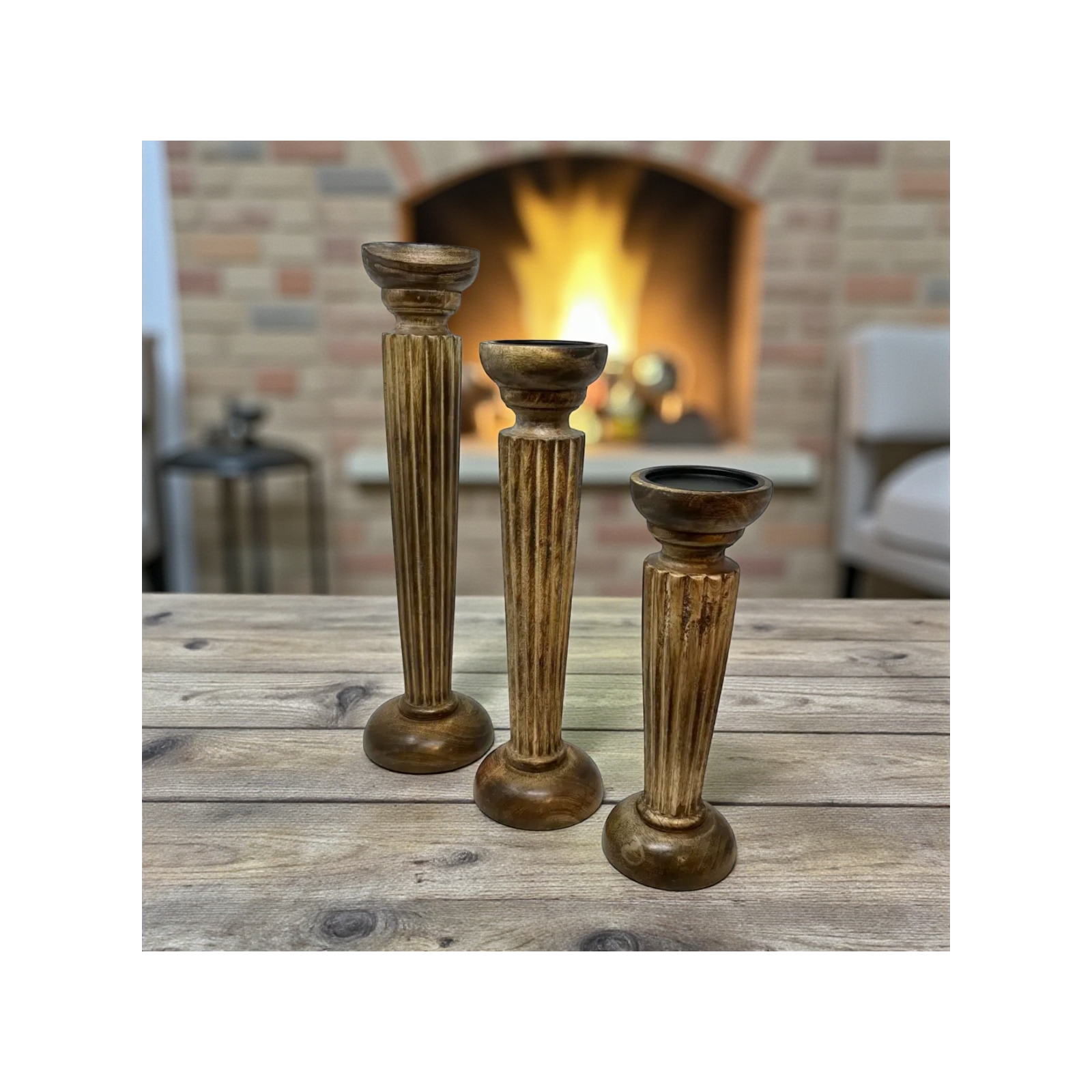 Set of 3 Hampshire Pillar Holder-Shabby Brown