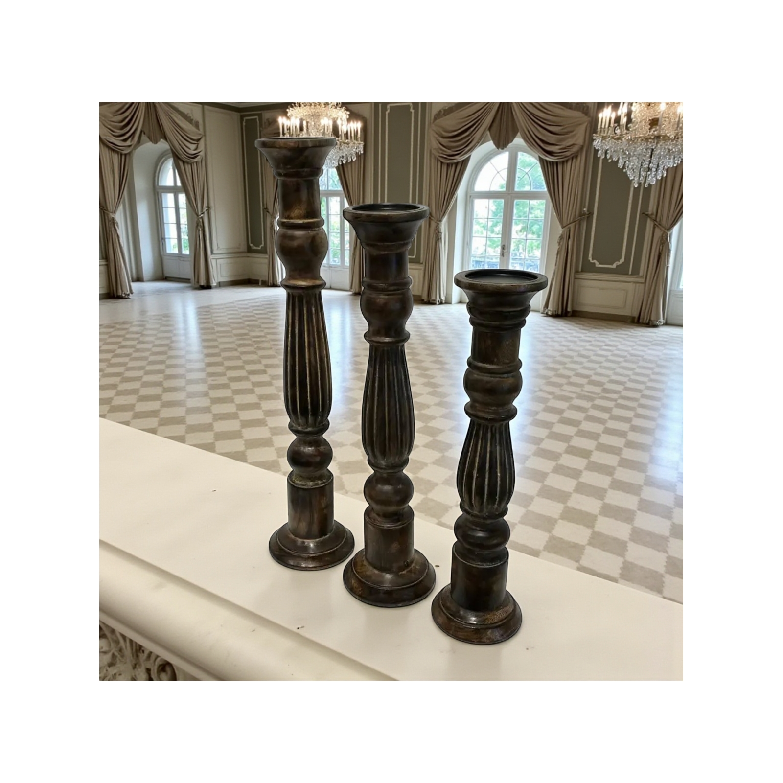 Set of 3 Liverpool Pillar Holder-Medium Oak Staine
