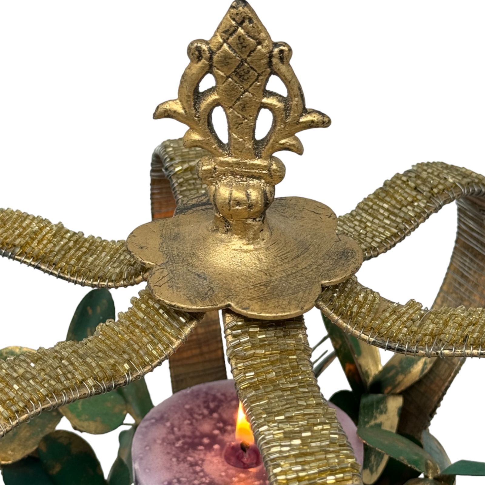 To add a touch of grandeur each Crown is beautifully topped with a cast Iron Finial further enhancing its majestic appearance. This unique combination of delicate beadwork and sturdy iron craftsmanship makes the Sovereign Crown a timeless and remarkable decorative piece.