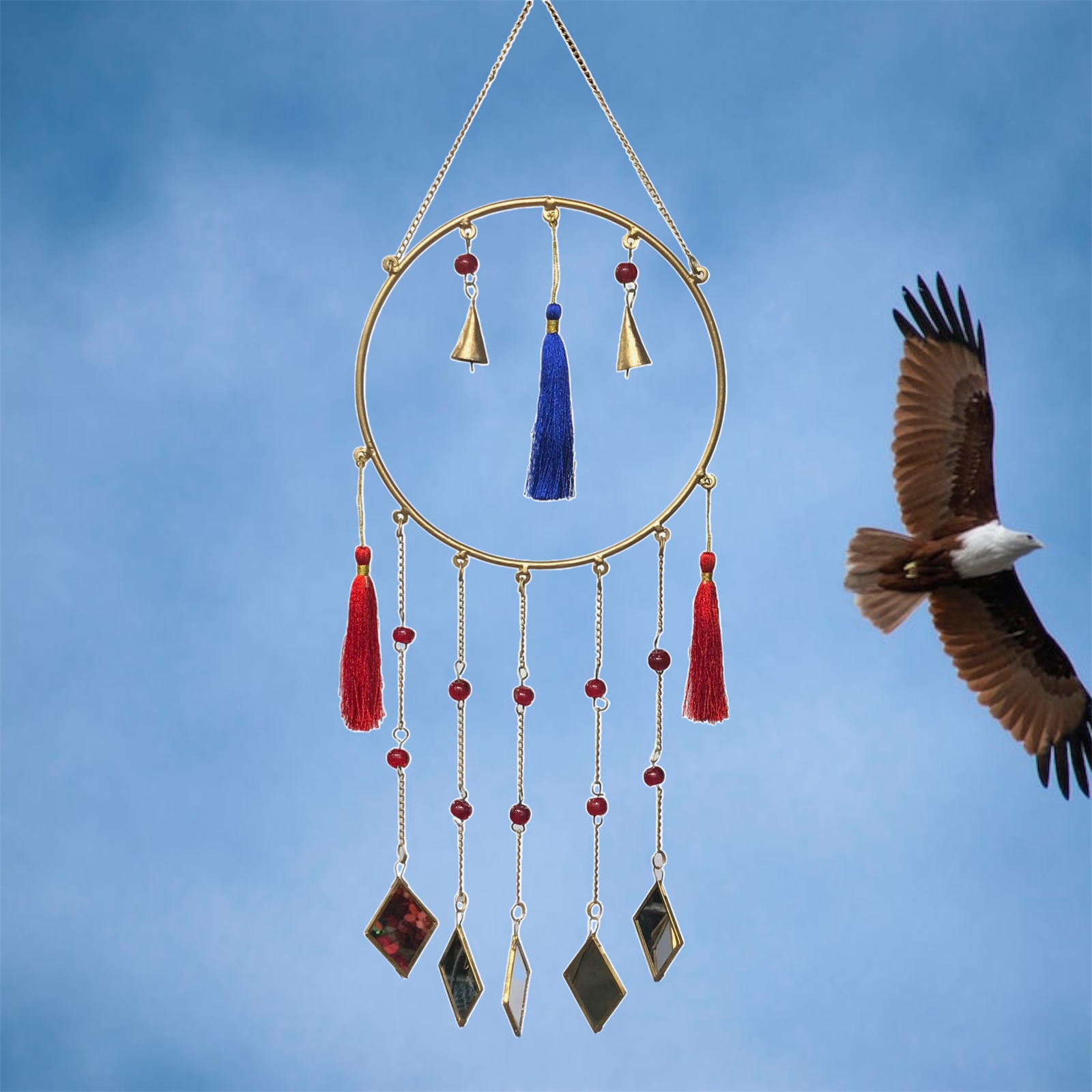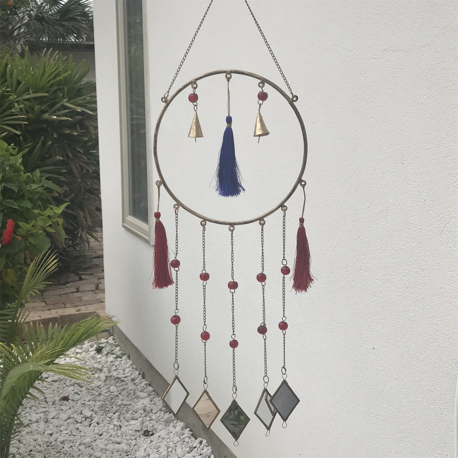 Mirror & Tassel Sun Catcher- Gold Multi Color