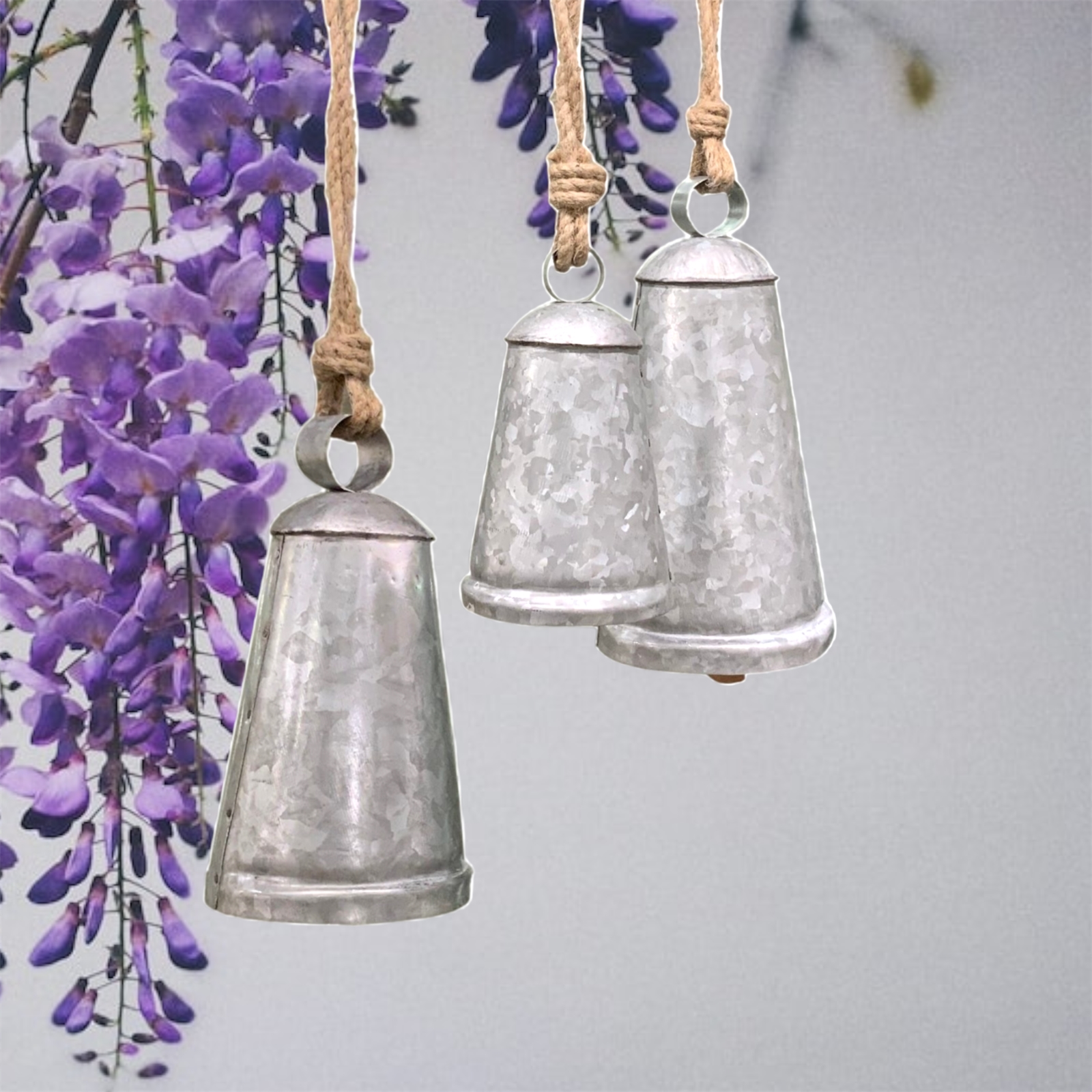 Set of 3 Sun Temple Bells-Galvanized