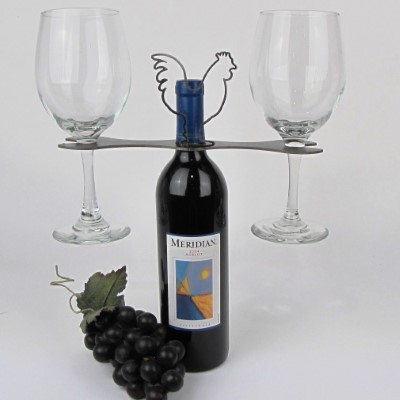 Rooster Open End Wrench Wine Glass Holder-Natural-26663-4/4/12