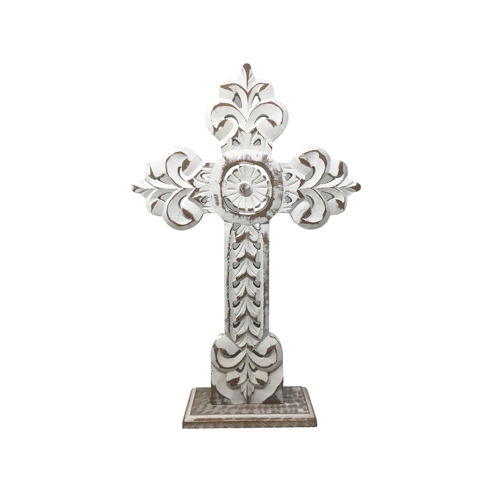 Abigail Table Cross a stunning and versatile decorative piece that adds a touch of elegance to any setting. Handcrafted in India this exquisite cross is meticulously carved on both sides showcasing the skilled craftsmanship of artisans.