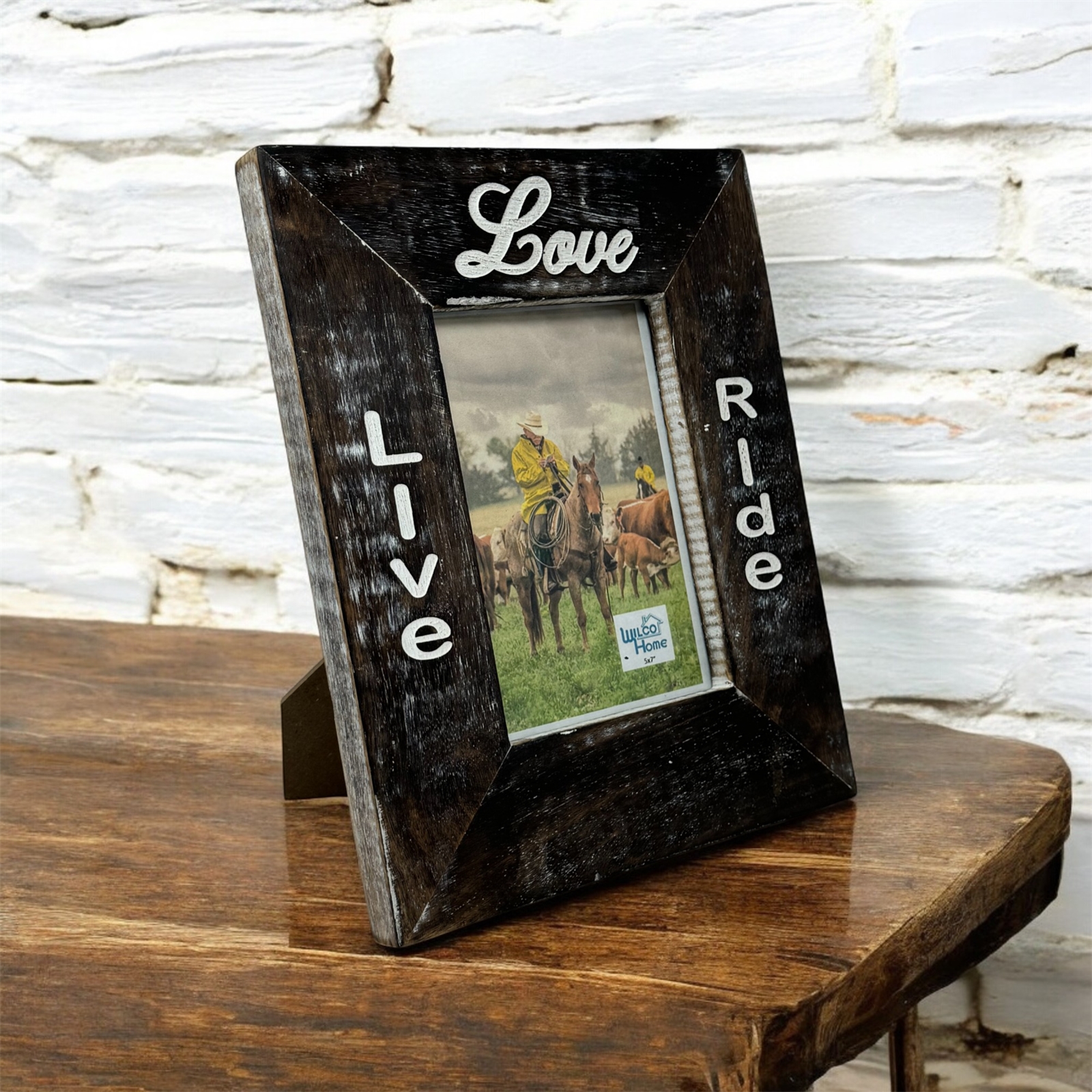 Live, Love, Ride Laser Engraved Mango Wood Easel Frame