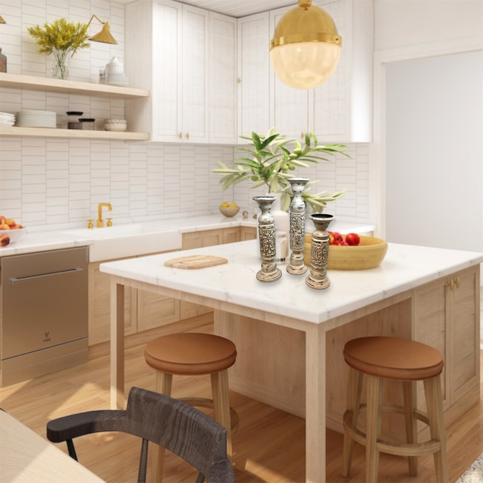 Set of 3 Sissinghurst Pillar Holder-Shabby Chic Wh